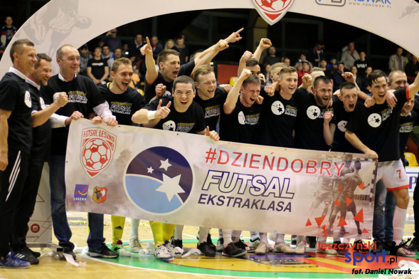 Zwycięstwo i świętowanie awansu do Futsal Ekstraklasy. Tak wyglądała sobota w hali Trapez. Zapraszamy na fotorelację LeszczynskiSport.pl z meczu GI Malepszy Futsal Leszno – Dragon Bojano.