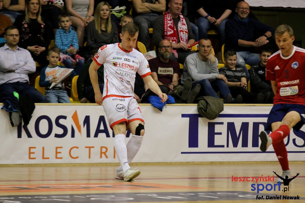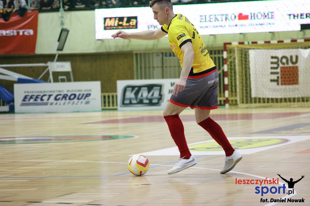Kompletowanie składu na sezon 2019/2020 wchodzi w decydującą fazę. Jako 10 zawodnik do naszego składu na kolejny sezon dołącza Kamil Kruszyński. Futsalowe doświadczenia zdobywał studiując i reprezentując przez trzy sezony pierwszoligowy AZS Zielona Góra. Swoją karierę rozpoczął na trawie reprezentując drużynę Lecha Sulechów. Jako siedemnastolatek zadebiutował w III lidze, przez trzy sezony grając w Pogoni Świebodzin. Kolejne 4 sezony Kamil spędził w III-ligowej Formacji Port 2000 Mostki, która w sezonie 2014/2015 wywalczyła grę w barażach o II ligę. Od sezonu 2016/2017 łączy grę w IV ligowym klubie Dąb Przybyszów z występami na parkiecie. W dorobku strzeleckim Kamil ma już 135 bramek zdobytych w oficjalnych spotkaniach, z czego aż 64 w trzech futsalowych sezonach na parkietach 1 PLF. Jako jedyny zawodnik naszego klubu w poprzednim sezonie łączył grę na trawie i w hali. Zdobywając dla nas 19 bramek i asystując przy 16 udowodnił swoją wartość i przydatność na parkiecie stąd decyzja o przedłużeniu umowy na kolejny sezon. W meczu przeciwko Bojano zdobył ich aż 5, co możecie obejrzeć w poniższym skrócie od 2’30”. Jego przewagę stanowi dynamiczna gra i często wygrywane pojedynki 1 na 1. Ambicją Kamila jest możliwość gry o najwyższe cele i to będzie mógł realizować grając w Futsal Ekstraklasie. Mamy wielką nadzieję, że znakomitą strzelecką passę podtrzyma w nadchodzącym sezonie reprezentując nasz klub.