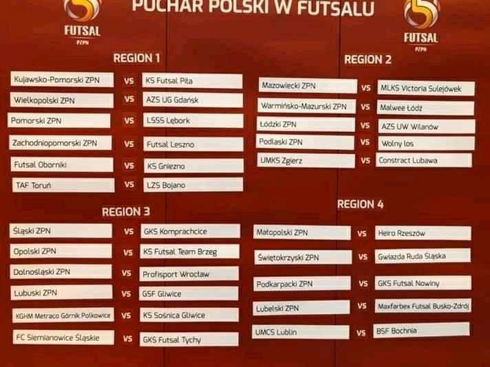 W niedzielę 22.12 w Tychach odbyło się losowanie 1/32 Pucharu Polski w futsalu. Departament Rozgrywek Krajowych PZPN dokonał podziału na makroregiony.