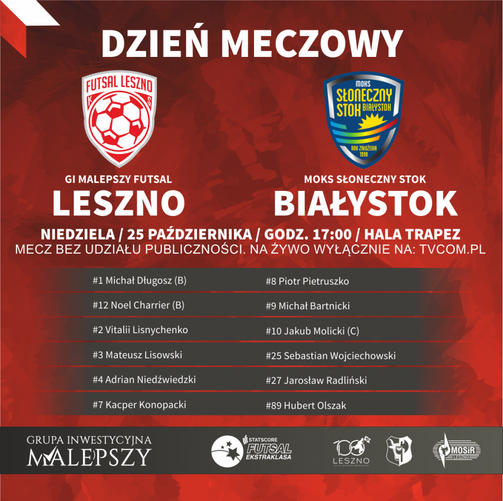 GI Malepszy Futsal Leszno – MOKS Słoneczny Stok od 16.50 na żywo