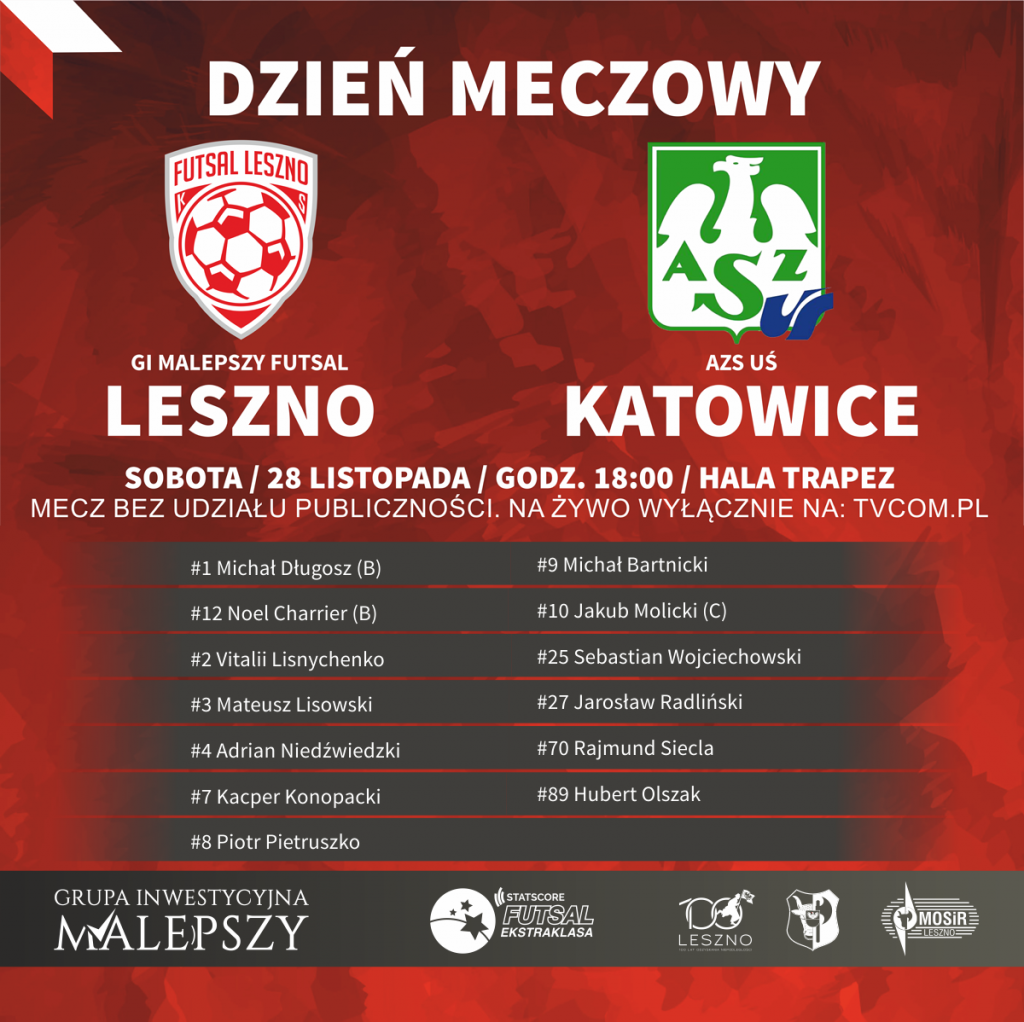 GI Malepszy Futsal Leszno – AZS UŚ Katowice na żywo od 17.50