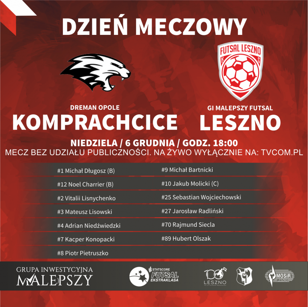 Dreman Opole Komprachcice – GI Malepszy Futsal Leszno na żywo od 18.50