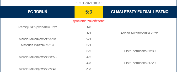 FC Toruń – GI Malepszy Futsal Leszno 5:3 (1:0)