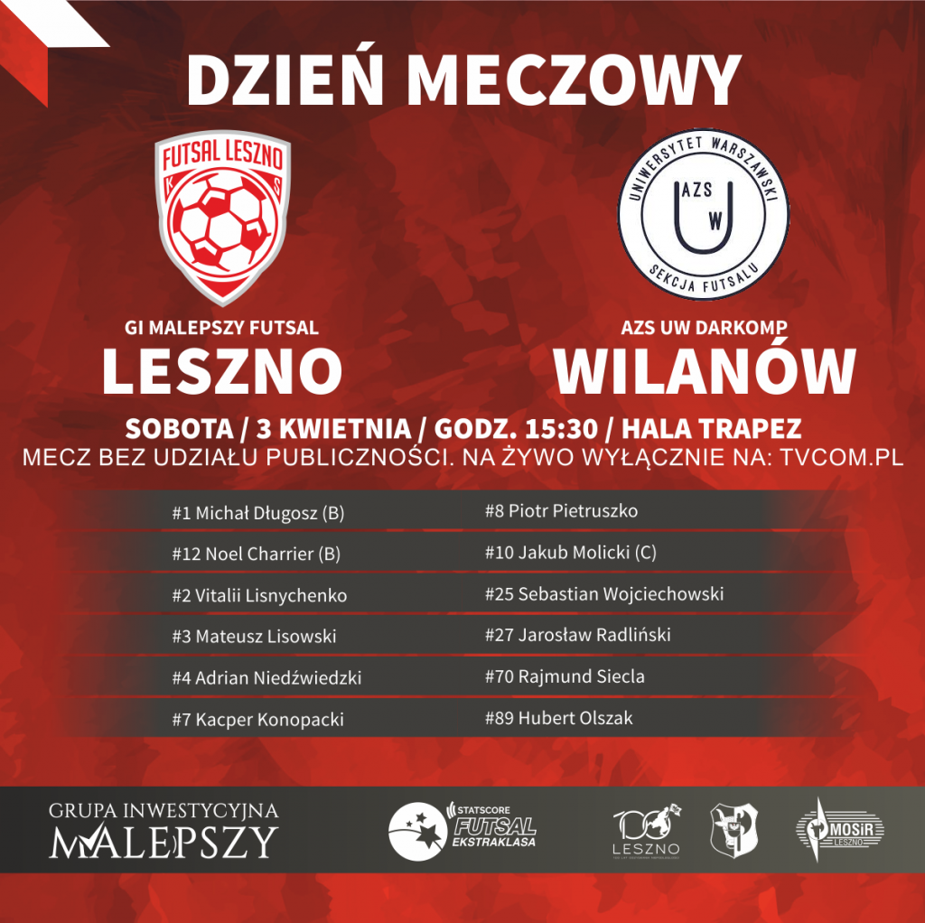 GI Malepszy Futsal Leszno – AZS UW Wilanów na żywo