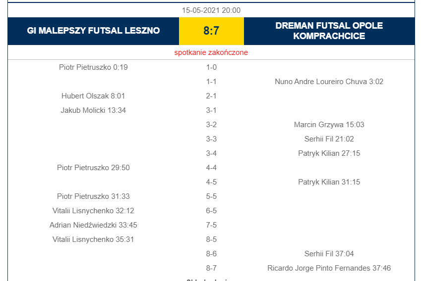 GI Malepszy Futsal Leszno – Dreman Opole Komprachcice 8:7 (3:2)