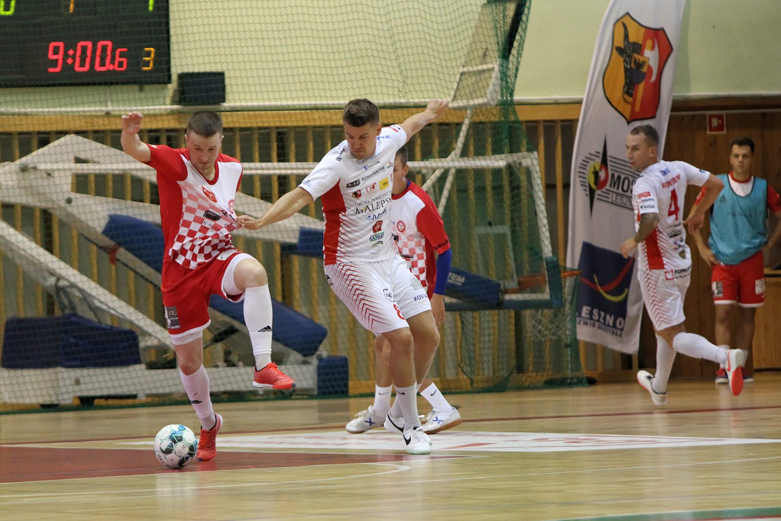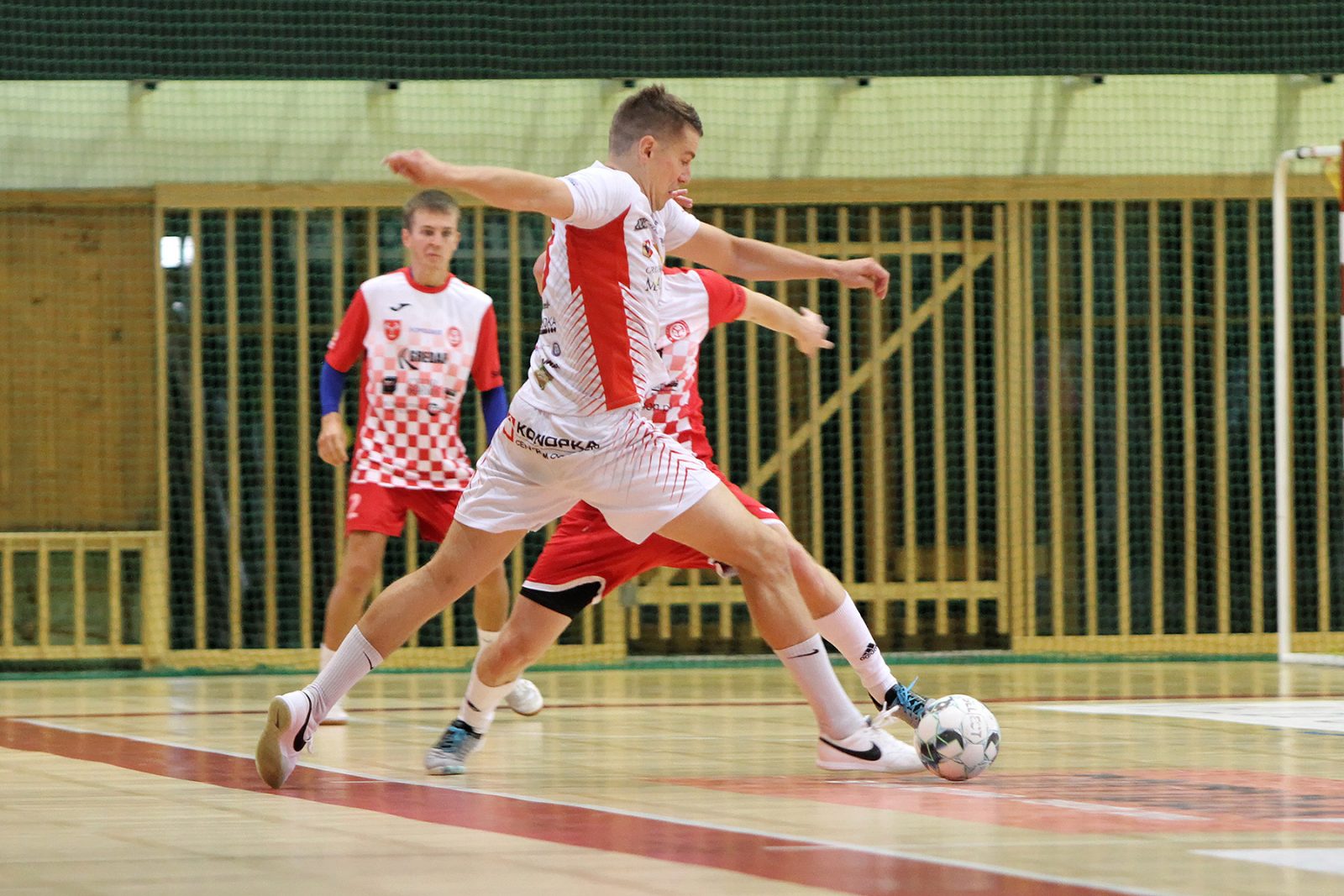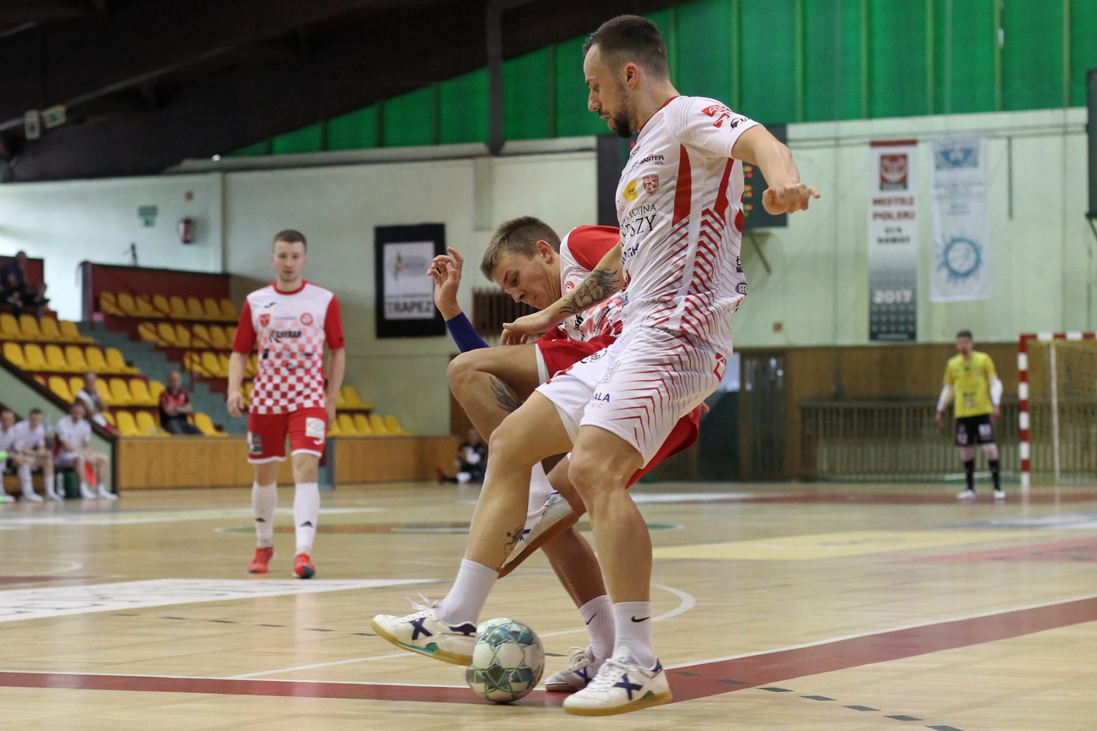 Pierwsze sparingowe spotkanie w Hali Trapez rozpoczęło się o godzinie 12.00 . Rozegrano trzy tercje po 20 minut z zatrzymywanym czasem. W naszym składzie piątka nowych zawodników Jakub Kąkol 11, Douglas Neutzling 32, Dominik Solecki 88 oraz dwaj młodzieżowcy pozyskani z Futsal Gostyń Fryderyk Maciejewski 99, a w bramce z numerem 2 Orfeusz Jarożek. Poza nimi zobaczyliśmy na parkiecie Mateusza Lisowskiego Adriana Niedźwiedzkiego, Kacpra Konopackiego, Piotra Pietruszko, Jakuba Molickiego,  Sebastiana Wojciechowskiego, Rajmunda Sieclę, Huberta Olszaka, a w bramce Noela Charriera
