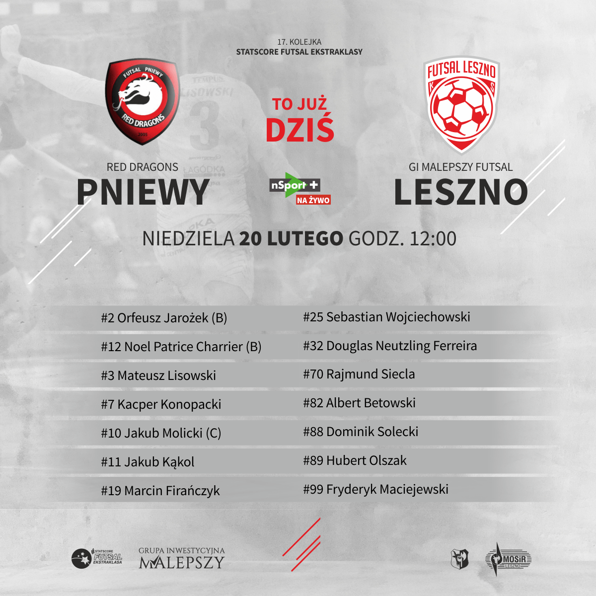 Spotkanie, które obejrzycie na żywo na kanale nSport+ zagramy w składzie: