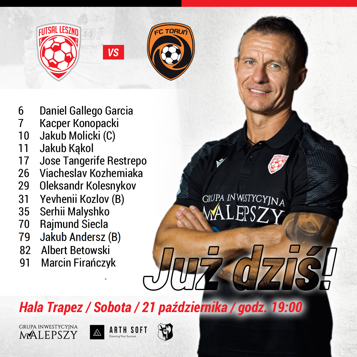 Pierwszą historyczną bramkę na wyremontowanym Trapezie zdobywa Rajmund Siecla już w 2. minucie. W 3. na 2:0 podwyższa powracający po kontuzji barku Jakub Kąkol. W 12. min. doskonale rozegrany aut, a piłkę do bramki kieruje Marcin Firańczyk. Pierwsza połowa kończy się naszym trzybramkowym prowadzeniem. W drugiej długo nie możemy podwyższyć, ale mamy Rajmunda Sieclę, który w 27. min. trafia po raz drugi. W kolejnych dwóch minutach najpierw goście zdobywają pierwszą bramkę, a odpowiada im Serhii Małyshko. Przy 5:1 goście wycofują bramkarza co pozwala im zdobyć drugą bramkę w 30. minucie. W 34. min my zdobywamy dwie bramki – najpierw Viacheslaw Kozhemiaka , a potem dopisujemy bramkę samobójczą. W kolejnej minucie trzecie trafienie na koncie torunian. W ostatniej minucie na 8:3 podwyższa Kozhemiaka, a swój debiut zalicza w naszej bramce Jakub Andersz.