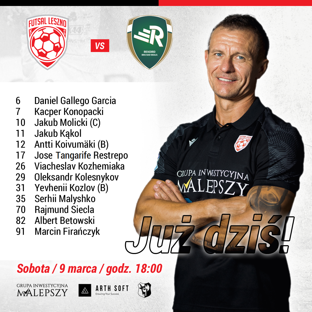 Dziękujemy za ogromne zainteresowanie sobotnim meczem GI Malepszy Arth Soft Leszno – Rekord Bielsko-Biała i informujemy, że wyczerpała się pula biletów przeznaczonych do sprzedaży intrenetowej. Do kasy hali przed meczem trafi ograniczona ilość biletów w cenie 30 zł normalny i 5 zł ulgowy. Halę otwieramy tradycyjnie o 17.00. Zapraszamy do korzystania z atrakcji dla dzieci Świat Kolorowych Dmuchańców i punktów gastonimicznych Prosto z pieca Rynek 15 i Murphy’s Irish Pub