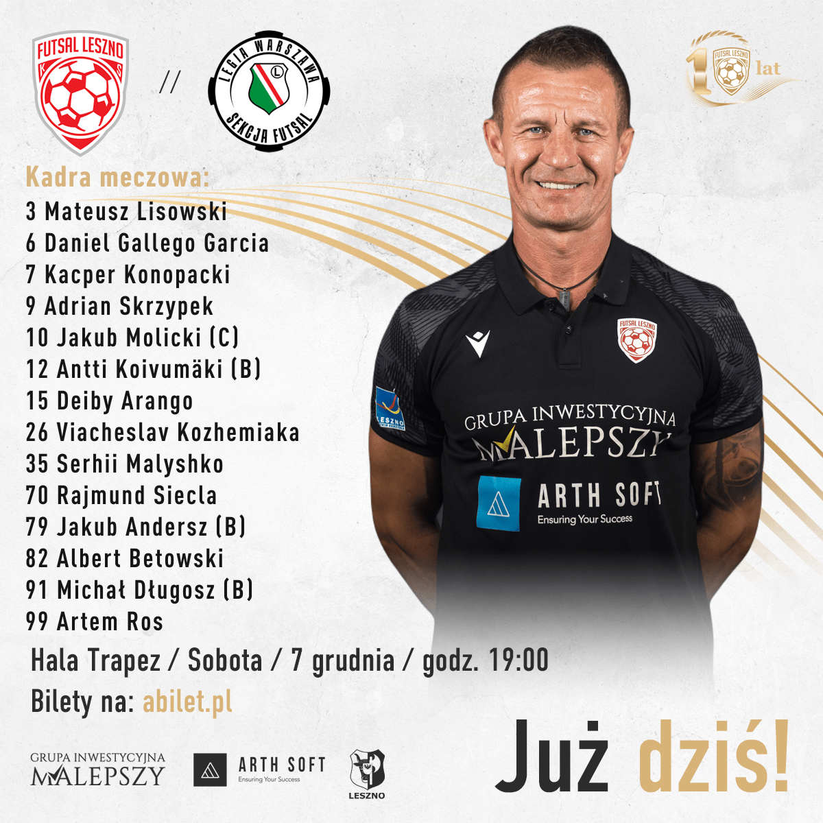 Mecz pod pełną kontrolą od pierwszej do ostatniej minuty. Pełna hala i głośny doping poniosły nas do zwycięstwa, za co serdecznie Wam dziękujemy. W ostatnich dwóch minutach między słupkami pojawił sie kończący swoją futsalową karierę Michał Długosz.